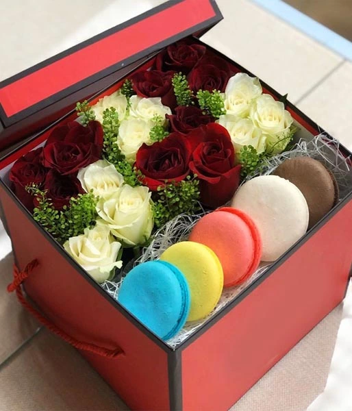 Подарите нежность с нашей маленькой коробочкой, наполненной красными и белыми розами, зеленью и изысканными макаронс. Этот романтичный подарок идеально подходит для свиданий, дней рождения и особенных моментов, сочетая красоту цветов и сладость лакомств. Создайте атмосферу страсти и радости, оставив незабываемые впечатления. И не забудьте, доставка по Краснодару абсолютно бесплатна!