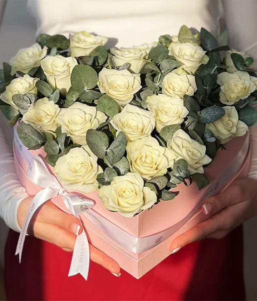 Коробочка с розами "Твое сердце" — изысканная маленькая композиция, состоящая из 21 нежной белой розы и свежего эвкалипта, бережно уложенных в элегантную коробочку в форме сердца. Этот утончённый подарок станет прекрасным знаком внимания в повседневной жизни, романтическим комплиментом или небольшим презентом на особый повод. Белые розы символизируют чистоту и искренность чувств, а эвкалипт добавляет свежести и изящества композиции. Идеально подходит для выражения любви и заботы, чтобы порадовать любимого человека без лишних слов. Бесплатная доставка по Краснодару позволит сделать ваш сюрприз максимально удобным и своевременным. Подарите тепло и нежность с коробочкой "Твое сердце"!